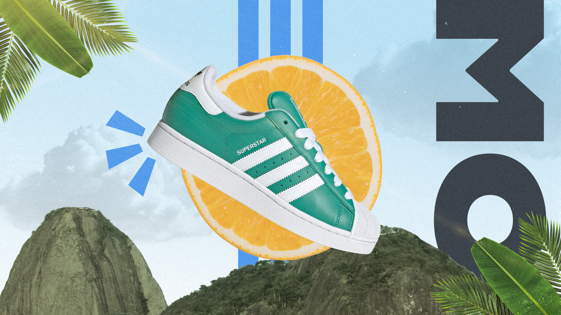 BR: "Adidas Mondo" foi o tema proposto pelo desafio do Layer Lemonade, no qual fui escolhida como primeira colocada. O projeto nasceu da vontade de celebrar o icônico Superstar II, um calçado que caminha pelas ruas de todo o mundo. Como eu assumi a produção de ponta a ponta, meu foco principal foi traduzir essa presença global em uma narrativa visual que fosse, ao mesmo tempo, diversa e coesa.